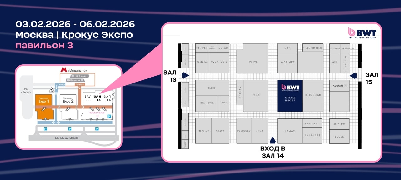 Мы приглашаем вас посетить стенд BWT — номер B5057 и познакомиться с новыми продуктами, технологиями и решениями для частных клиентов, девелоперов и профессионального рынка.