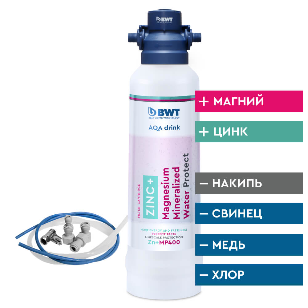 1. Фильтр BWT Zn+MP - фильтр доочистки питьевой воды с дополнительным обогащением магнием, цинком и умягчением воды.