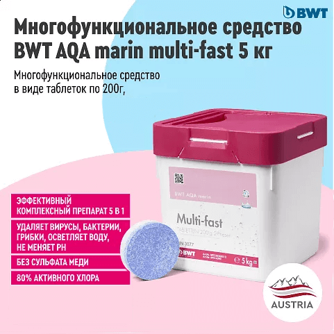 14380 Multi-fast Tabletten 200g, 1kg, AQA marin Реагент для бассейна BWT Многофункциональное средство BWT AQA marin multi-fast 5 кг Многофункциональное средство BWT AQA marin multi-fast 5 кг