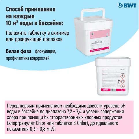 BWT 14380 Multi-fast Tabletten 200g, 1kg, AQA marin Реагент для бассейна 14380 Multi-fast Tabletten 200g, 1kg, AQA marin Реагент для бассейна