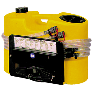 Переносная установка обладает компактными размерами, ее удобно использовать для химической очистки труб и теплообменников от известкового налета. Установка обеспечивает циркуляцию реагента по трубопроводной системе, она применяется в сочетании со средством для промывки труб Cillit.