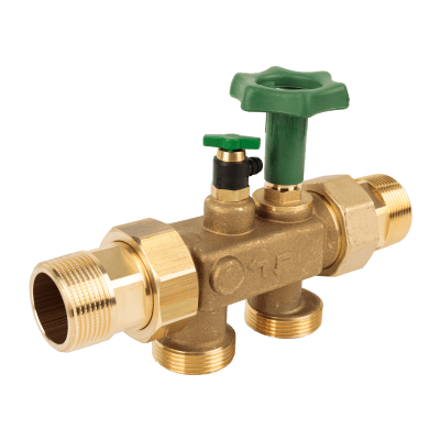 Соединительный модуль со встроенными байпасом, обратным клапаном и клапаном деаэрации используется для быстрого и легкого подключения умягчителей и фильтров при помощи соединительных шлангов DN32. Подключение с помощью резьбовых патрубков.