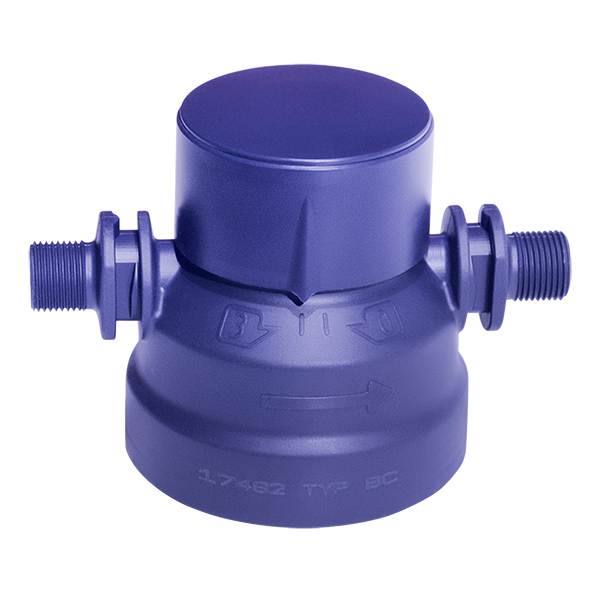 Головная часть имеет размер резьбового подключения 3/8" как на входе так и на выходе, через которые инсталлируется гибкая подводка или пластиковые шланги через переходники, для последующего соединения с краном фильтрованной воды. Монтаж оборудования занимает минимум времени. Два резиновых уплотнения головной части обеспечивают плотное прилегание к корпусу фильтра, что полностью исключает протечки и другие неисправности системы.