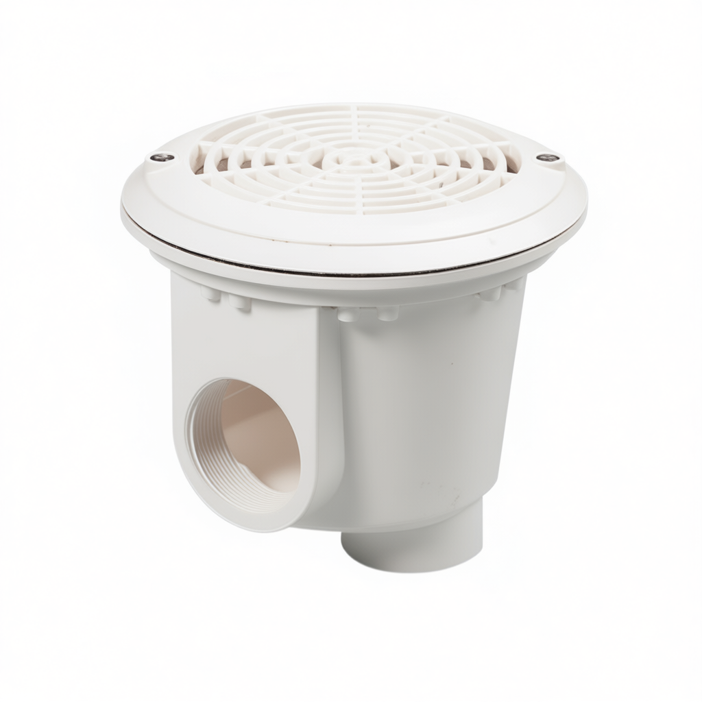Донный слив обеспечивает пропускную способность до 15 м³/ч при использовании с трубами 63 мм. Для работы с трубами 50 мм требуется установка редукционного фитинга 2"x50, при этом максимальная производительность составляет 8 м³/ч.
