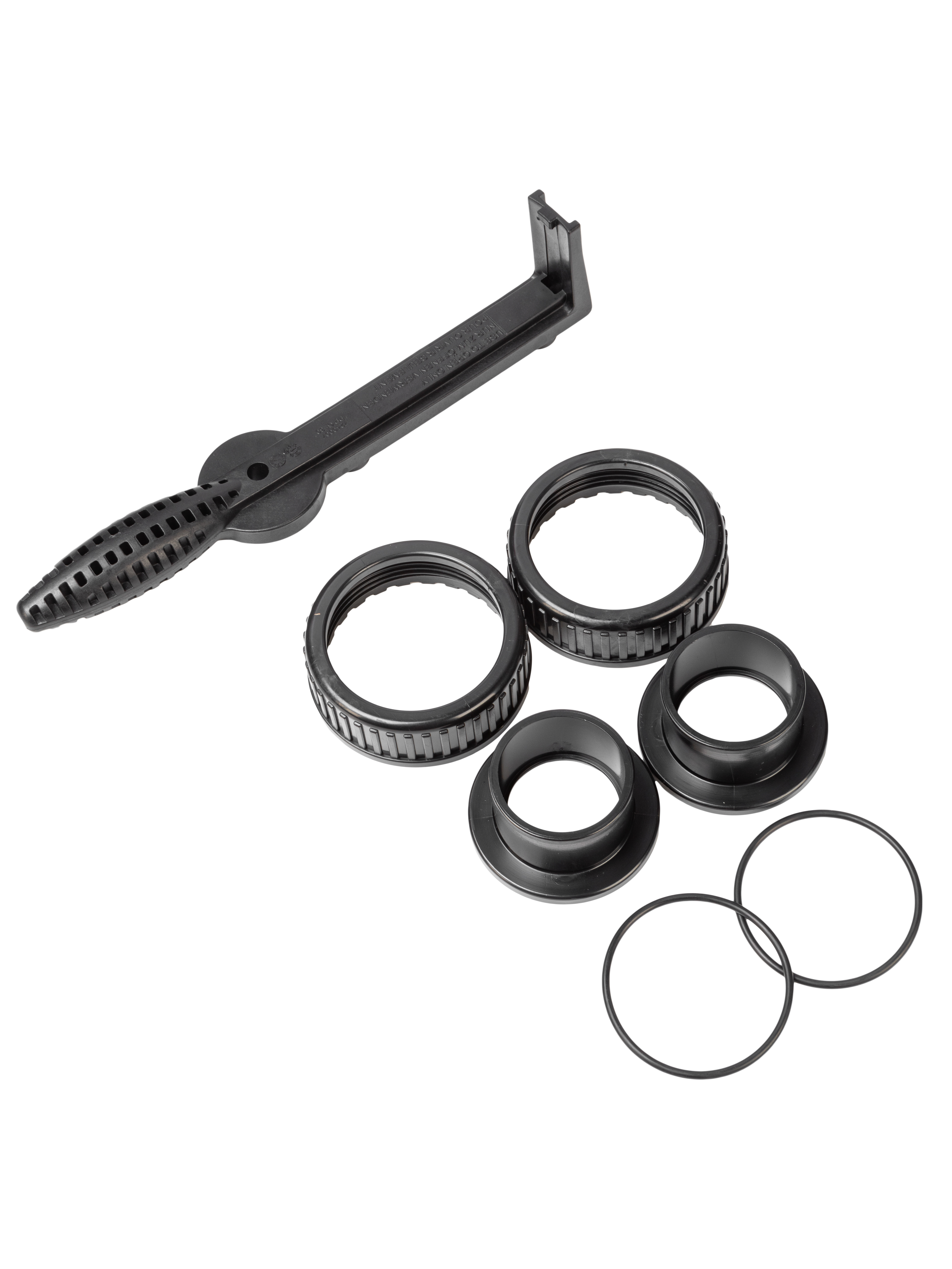 Предфильтр увеличенного объема с прозрачной резьбовой крышкой позволяет визуально контролировать загрязнение. Для удобства обслуживания в комплект входит ключ для открывания крышки.