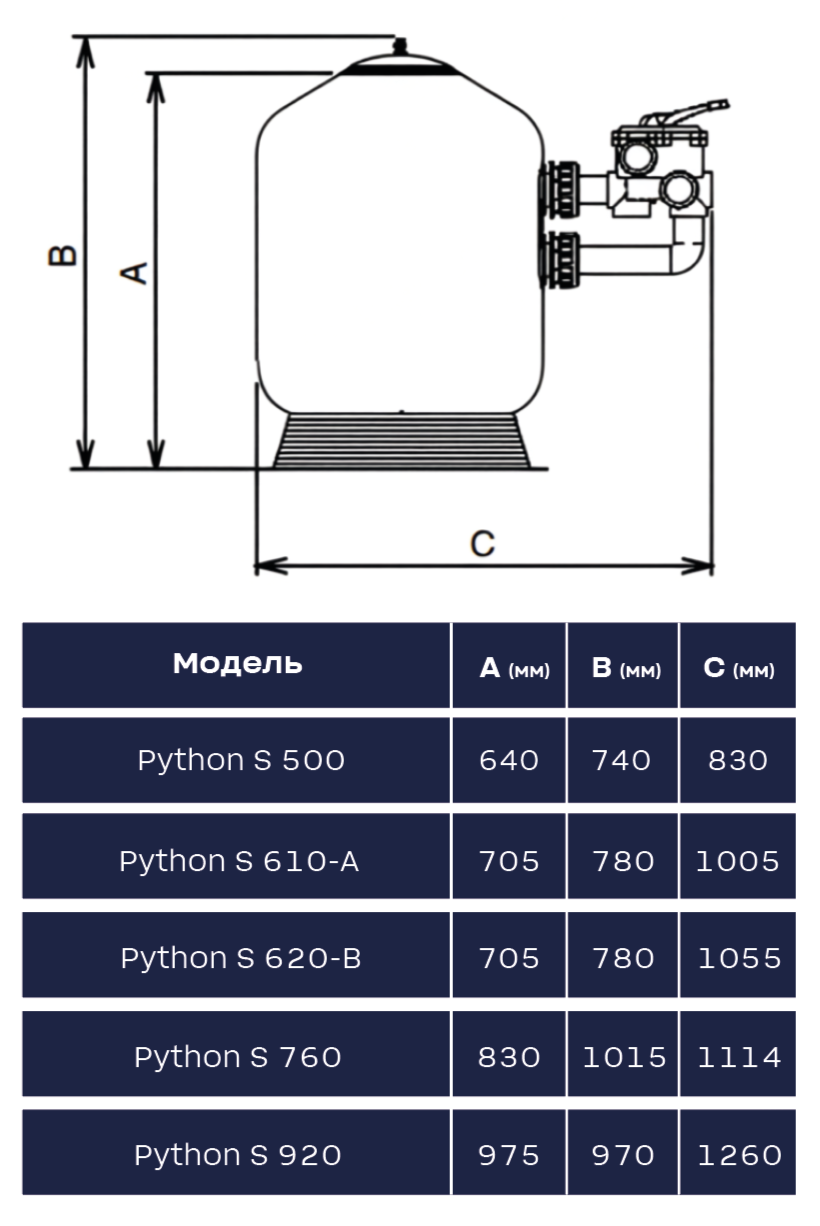 | Модель | Python S-500 | Python S-610-A | Python S-610-B | Python S-760 | Python S-920 |