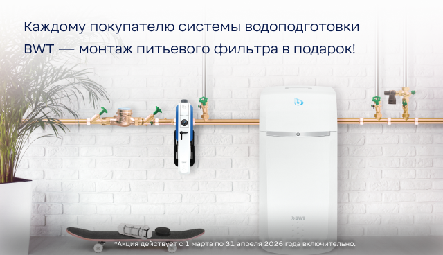 В данном разделе представлены акции интернет магазина "BWT", а также дана информация о новинках продукции компании в области водоочистки и водоподготовки. Здесь вы найдете самую актуальную информацию о скидках на фильтры и системы очистки воды для разных сфер, а также на бассейны и всё необходимое для их обслуживания. Мы специально собрали на одной странице самые интересные спецпредложения, чтобы вы могли купить оригинальную продукцию BWT со скидками или сэкономить на доставке своего заказа.